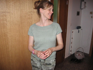 Ta da. I love this sweater and wore it all day today and still love it. It's the green gables pattern (from Zephyrstyle) - it knitted up very quickly and it fits great! I am very happy with it.